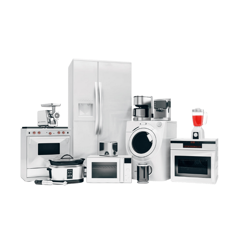 Refrigerators, AC units, washing machines, kitchen appliances, coffee machines, mobile phones, and home electronics.